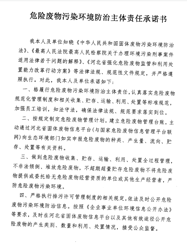 危險(xiǎn)廢物污染環(huán)境防治主體責(zé)任承諾書