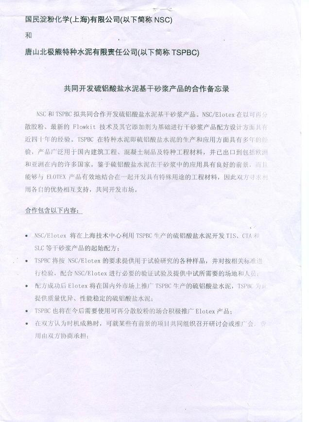 與國(guó)民淀粉(上海)公司聯(lián)合開發(fā)干砂漿