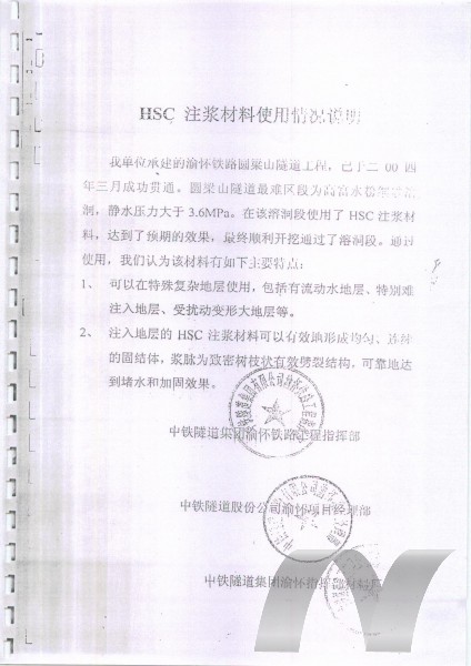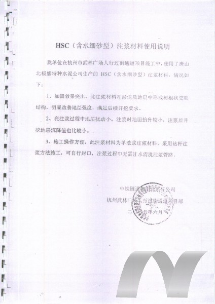 3、對地層擾動小:應(yīng)用HSC含水細砂型注漿材料,達到固結(jié)堵水要求的注漿壓力更小,所需注漿量更少,注漿均勻性更好。