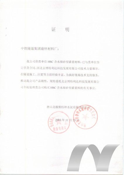 1. 不要與其他注漿材料混用。